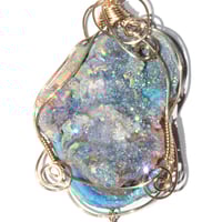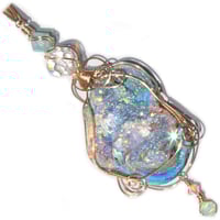 Aura Chalcedony Rosettes are extremely beautiful chalcedony quartz drusy formations from Brazil with a microscopic dichroic finish added to the surface to create a shimmering rainbow finish! Their effect is very unique and dramatic, high on flash, sparkle and rainbows! They are rare stones to come by and they make spectacular adornments that are always noticed!