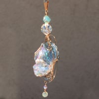 Hand crafted in 14k gold filled wire with sparkling Swarovski crystals, and a larger rainbow finish vintage round crystal.